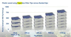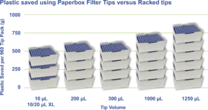 - Every PaperBox Filter Tip eliminates about 665g of plastic, which amounts to a huge saving when made in a number of labs. Just picture the combined effect of labs around the globe switching over—hundreds of thousands of kilograms of plastic waste can be avoided each year.