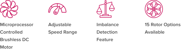 | Speed Range | 500 to 4500 RPM / (g) varies per rotor type |