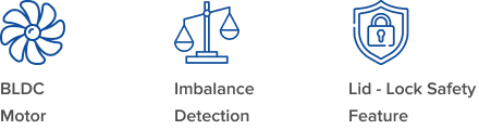 | Lid Lock Safety | Yes, lid opens automatically on run completion |