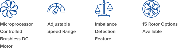 | Speed Range | 500 – 4500 RPM / (g) varies per rotor type |